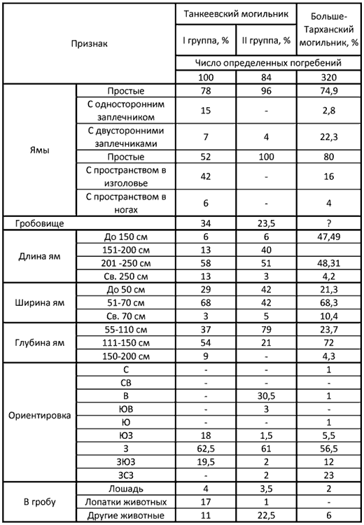 Таблица 10. Основные черты погребального обряда Танкеевского и Больше-Тарханского могильников.