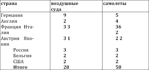 Согласно его исследованиям сила воздушного флота мира в конце 1910 года представляла собой следующую картину: