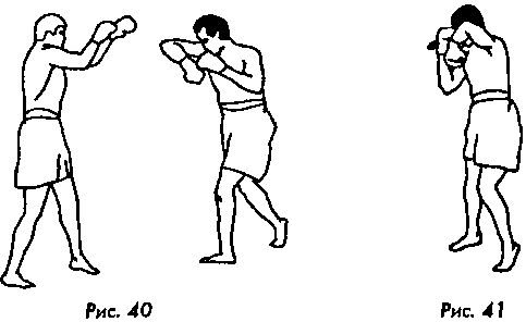 При правильно выполненном ударе, даже если соперник отойдет назад, вы не провалитесь, а просто окажетесь в устойчивом положении, каким является конечная фаза выполнения этого удара (рис. 40), и сможете мгновенно вернуться в «правильную стойку».