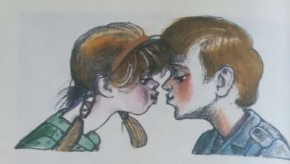 Анюта и Андрюша потянулись друг к другу. Губы мальчика коснулись губ девочки. И, словно обжегшись, Андрюша и Анюта отпрянули друг от друга.