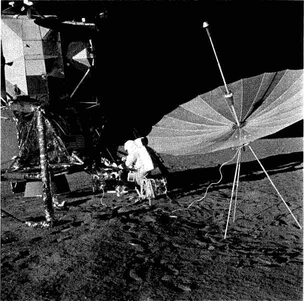 ALSEP вытянули из ПС с помощью внутренней тали, отделили планшет с геологическими инструментами и приступили к активизации SNAP-27 (ядерный термоэлектрический генератор, источник энергии для приборов ALSEP). Из гильзы, прикрепленной снаружи ПС, следовало извлечь топливный стержень с плутонием-238 и вставить его в SNAP. Потянули за шнур (предохранение от радиации), но стержень остался на месте. Не захотел он вылезать, и когда его сильно потянули «за уши»… Бин врезал по гильзе молотком (!) – стержень высунулся на сантиметр… Так и выколотили. Урок: не прилетайте на Луну без молотка.