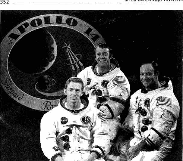 Рис. 6.75. Экипаж «Аполлона-14» (слева направо): пилот командного модуля Стюарт Руса, командир экипажа Алан Шепард и пилот лунного модуля Эдгар Митчелл.
