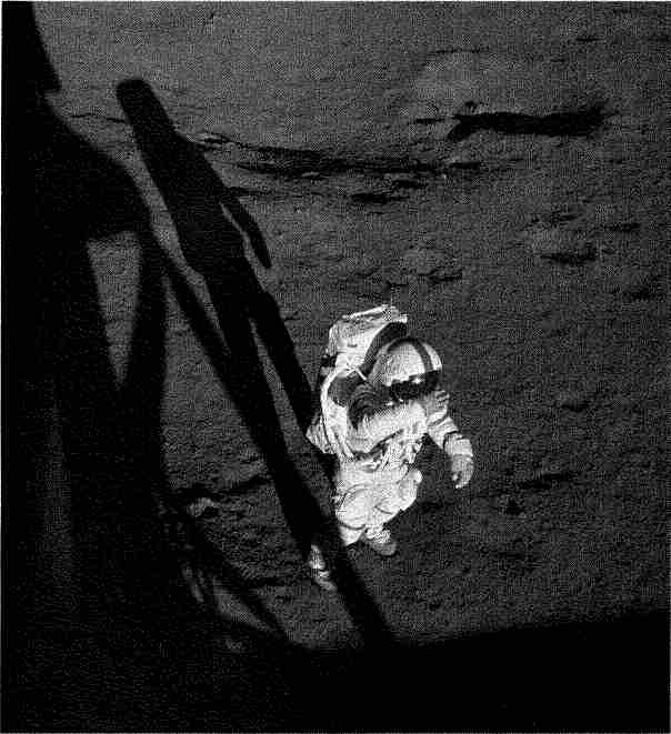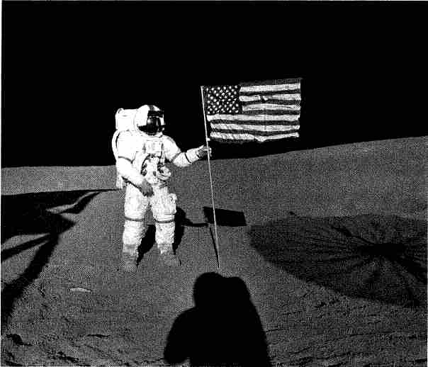 Рис. 6.78. Командир на грунте. Шепард из‑под руки осматривает окрестности: «Где тут кратер Конус?»