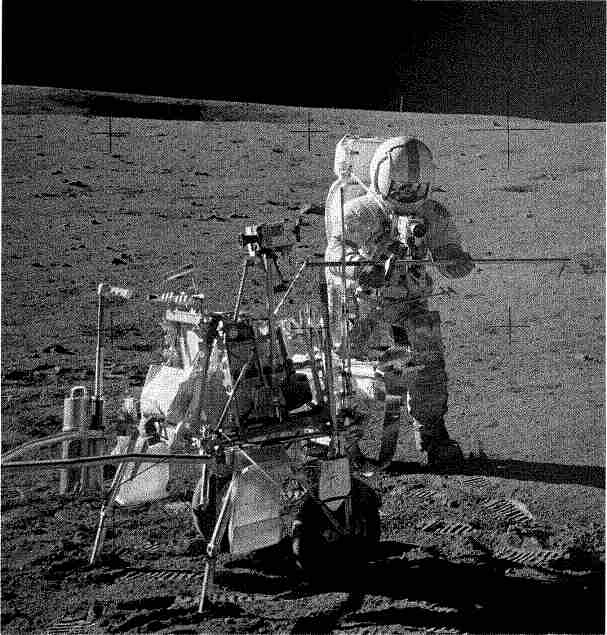 Рис. 6.81. Алан Шепард рядом с лунной рикшей, имевшей в документах очень серьезное название: Modular Equipment Transporter (MET).
