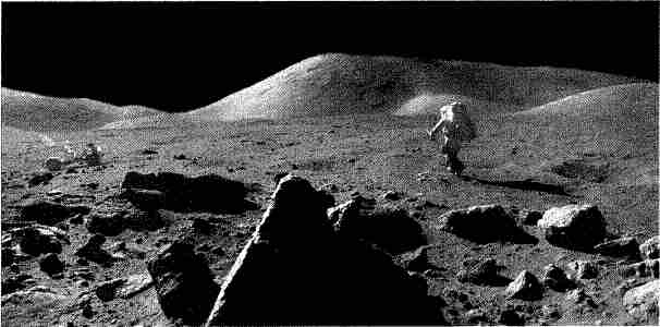 Рис. 6.129. Харрисон Шмитт в лунном «геологическом раю», вблизи кратера Камелот (полную панораму см. на рис. 3.8).