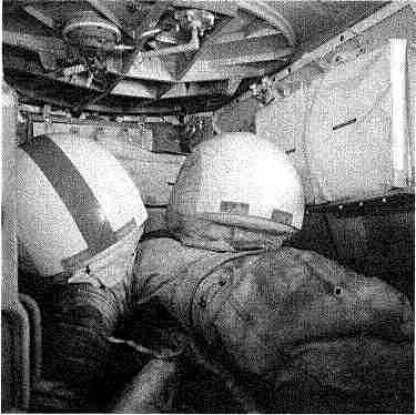 Рис. 6.137. Нашлемные каски и запыленные скафандры астронавтов, снятые в LM после последнего выхода на Луну.