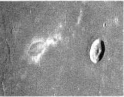 Рис. 2.24. Кратер Рейнер (справа) и светлая формация Рейнер-гамма. Телескопический снимок.