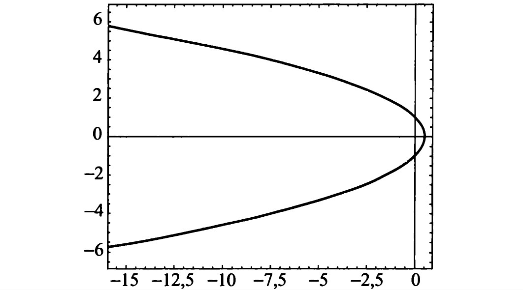 3. Парабола (рис.3). По параболе частица уходит в бесконечность. Скорость частицы уменьшается, неограниченно приближаясь к нулю. Фигурально выражаясь, частица уходит в бесконечность и останавливается там.