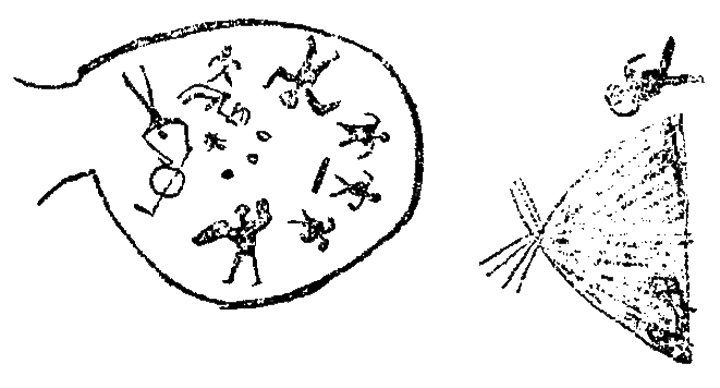 Рис. 71. Чукотский рисунок, изображающий жертвоприношение «новолунию».