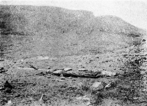 По прибытии на кладбище шест отвязывают и кладут на обычное место – возле ног трупа. В других случаях тело перевязывают несколькими ремнями, и три пары ременных концов оставляют свободными. За эти концы «провожатые» несут труп. На кладбище убивают собаку, выпускают у нее кишки и кладут на землю так, чтобы они образовали петли.