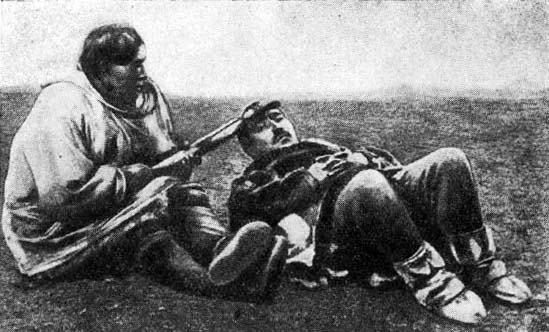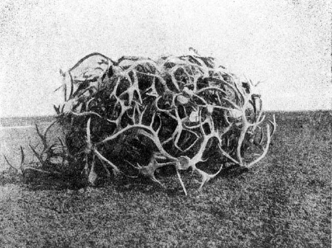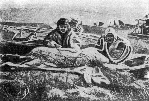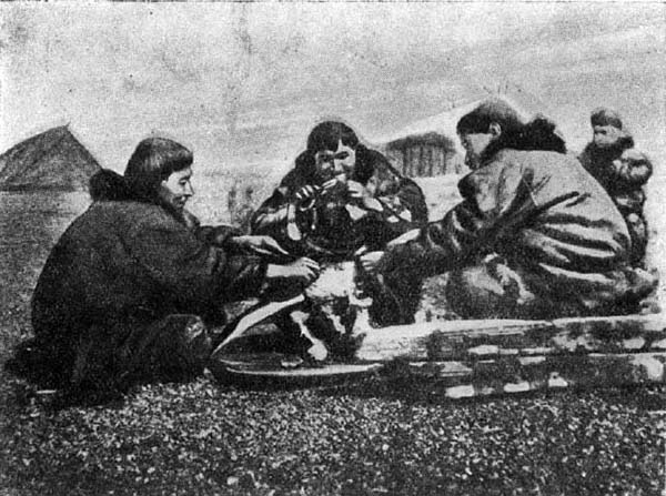 Мертвому подносят все виды жертвоприношений. Я находил на кладбищах около сухих костей и черепов кучи рогов, сломанные ружья, пустые водочные бутылки, игральные карты и т. п. Kuvar, торговец из селения Uŋasik, который уже не раз упоминался, оставил на могиле одного из своих сыновей даже граммофон и старый китоловный вельбот. Все эти предметы были также сломаны. Однако здесь не было основания опасаться, что вещи будут украдены. По объяснению туземцев, вещи, оставляемые возле трупа, ломают для того, чтобы от них отделились их души (uvirit), которые покойник берет с собой.