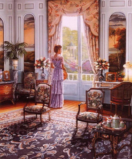 В комнате, уставленной антикварной мебелью, хрусталём, старинным фарфором, уникальными книгами, увешенной коврами и картинами, сидит Маша, ждёт мужа с работы. Вбегает муж Николай, возбуждённый и взъерошенный.
