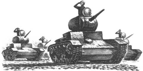 Гудит и дрожит все вокруг: и сталь, и воздух, и ты сам. Гусеницы – продолжение твоих рук и ног. Чувствуешь, как они стелются под тебя, как по ним несут тебя катки, оправленные каучуком. Тридцатитонная машина – твои чувства, твоя воля, твои мышцы: возьмешь на себя левый рычаг – подается влево, правый – принимает вправо.