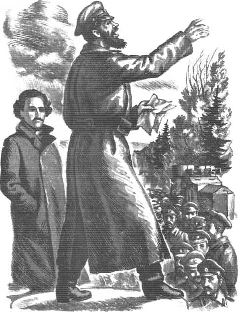 – «К гражданам России!» – прочитал с броневика бородач.– И верно, ко мне. «Временное правительство низложено. Государственная власть перешла в руки органа Петроградского Совета рабочих и солдатских депутатов... Дело, за которое боролся народ: немедленное предложение демократического мира, отмена помещичьей собственности на землю, рабочий контроль над производством, создание Советского правительства, это дело обеспечено...» Вон как! За мир, за землю, за труд...