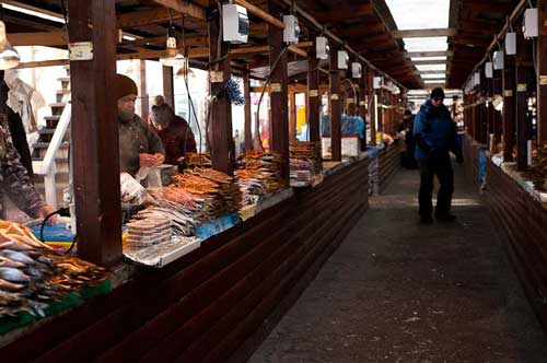 Сибирский рынок перед Новым годом – это изобилие. Это – мороженные морошка и клюква, брусника и жимолость, это – засоленная в банках черемша, соленая капуста в ладных бочках, кедровые орехи каленые и простые, грибы маслята, грузди, рыжики, это – омуль соленый, копченый и свежий, сиги и осетры, таймень и ленок, хариуз и сом, ценимый за печень. Это – мясо, которое не купишь и в Москве: медвежатина, сохатина, зайчатина, оленина, козлятина… Это – птица, вызывающая зависть у гурманов столицы: глухарь, тетерев, куропатка, рябчик, дикий гусь и дикая утка кряква. Описывать сибирский рынок тех далеких лет – дело бесполезное, тут надо писать роман, писать, истекая слюной. Здесь же можно купить живых животных. И не только домашних. Бурят в унтах и оленьей дохе продает медвежонка, заросший бородой киржак – лисят, тофалар (редчайшая нация Саян) – бельчонка. Белочка маленькая, умещается в кулаке.