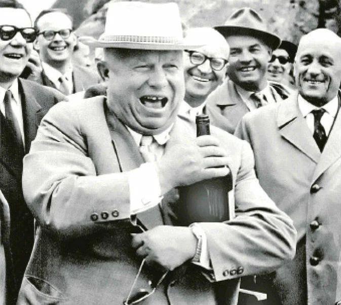 Кстати фраза "сообразить на троих" появилась именно при Хрущеве. Ведь купить можно было лишь целую бутылку водки и желающие выпить скидывались на ее покупку и коллективно распивали купленное. И все это благодаря хрущевской бездумной антиалкогольной кампании (что им всем так неймется, придя к власти топорно бороться с алкоголем!) которую он запустил 1958 году, запретив отпускать спиртные напитки на разлив, закрыв все питейные заведения вблизи школ и больниц, подняв цены на алкоголь и даже разрешив делать водку из технического спирта, вследствие чего стали происходить массовые отравления.