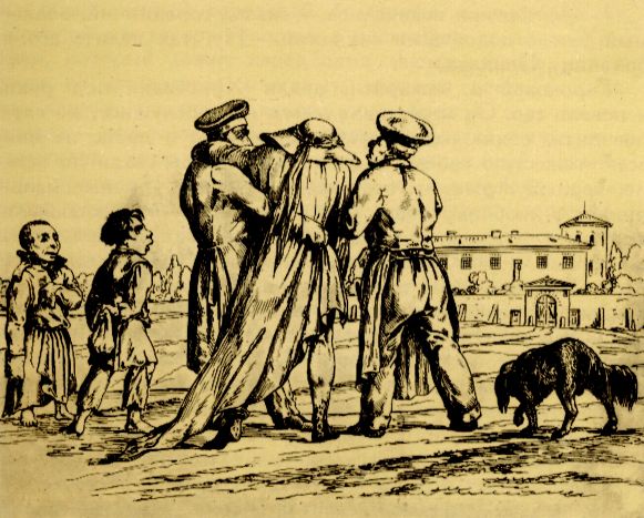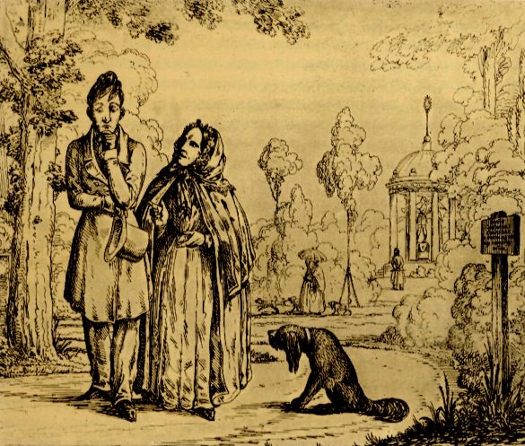 Но нас ждет картина еще грустнее этой и, кажется, изящнее по смыслу. Чисто поле, все пусто,– тычинка, камень, сосенка, столбовая дорога – и Аршет несется во весь дух. Куда, зачем, и где же барин его? Аршет ищет барина своего – вот все, что должно подписать под этой картиной: других толкований не нужно. Аршет в чистом поле ищет своего господина, и чутье ведет верную собаку все прямо, по печальной дороге, на повороте которой виден издали указательный столб. Кто заботится о пропавшем без вести Христиане, кто его ищет, кто сочувствует ему или праху его? Кто из жителей Сумбура, вспомнив, что был в городе человек, которого в былое время наперехват зазывали в гостиные – кто спросит теперь: где он и что с ним, и кто пойдет его искать? Аршет, один Аршет, и более никто; и тот делает это, как надобно полагать, только по глупости и бессмысленности своей, как неразумная тварь; иначе и ему бы до Христиана не было теперь никакой нужды.