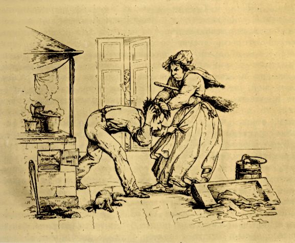 Слово "барин" ошеломило Виольдамура как обухом. "Барин",– подумал он, и простофиля наш теперь только стал догадываться, что самому ему, конечно, в доме этом барином не бывать и что нынешнее похождение его не иное что, как подготовленная самого дурного разбору шутка. Христиан рассвирепел; он был в состоянии снести в эту минуту с лица земли весь дом и всю деревню супруги своей и не помня себя с проклятиями кинулся в другие покои. Двери в гостиную разлетелись вдребезги; пробежав в одну секунду еще одну комнату, Виольдамур застал все новое семейство свое за утренним чаем. Супруга ахнула, взглянув на исступленного мужа своего, и кинулась под защиту братца; дети с визгом рассыпались во все концы, а ротмистр встал, а как лютый Христиан сам первый пошел на него в отчаянную атаку, то приземистый, широкоплечий братец вышвырнул жиденького немца в один толчок из комнаты, припер дверь и заступил ее ногою. Между тем люди сбежались, и штабс-ротмистр, ухватив трость покойного первого супруга сестрицы своей, вышел расчесться со вторым супругом ее, позвав еще с собою двух человек. Христиана выпроводили, или вытолкали на крыльцо, велели в ту же минуту закладывать бричку, а штабс-ротмистр остался с дубиной на часах при изгнаннике; между тем пасынки его показывали ему из-за дядюшки языки, а успокоенная супруга с удовольствием поглядывала на сцену эту в окно. Вскоре выкинули Виольдамуру узел вещей его и шляпу, которую Аршет немедленно подхватил в зубы, упросили гостя-хозяина сесть в бричку и повезли. Бешеная минута прошла для Христиана, он остыл и дрожал только всем телом. Растянувшись в изнеможении на мягком сене, покрытом ковром, пролежал он несколько часов почти без чувств.
