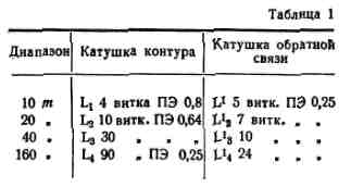 Данные катушек монитора приведены в табл. 1.