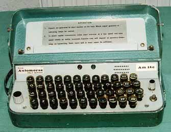 Это норвежская автоморзе клавиатура модель AM-14C. Этот небольшой манипулятор в стиле клавиатуры был разработан Лейфом Эвенсен Патрик, у которого была компания "Telespeed" в Гетеборге, Швеция, с 1956 по 1974 год, позже переименованная в Aksieselskapet Automorse. Он сделал три версии, последняя из которых (на фото) около 1969 года. Первая работала с 14 механических реле, вторая была более стабильна, на основе диодной матрицы только с двумя реле и последняя была полностью транзисторная. Первый вариант, военные власти США сразу забраковали: "слишком много движущихся частей№. Она была чем отозван с рынка. 45 из них были сняты норвежскими военными и распроданы за бесценок. Второй вариант был недостаточно водонепроницаемыми и и тоже не принят норвежскими военными. Из-за нежелания норвежских вояк третья версия также не вышла на рынок.