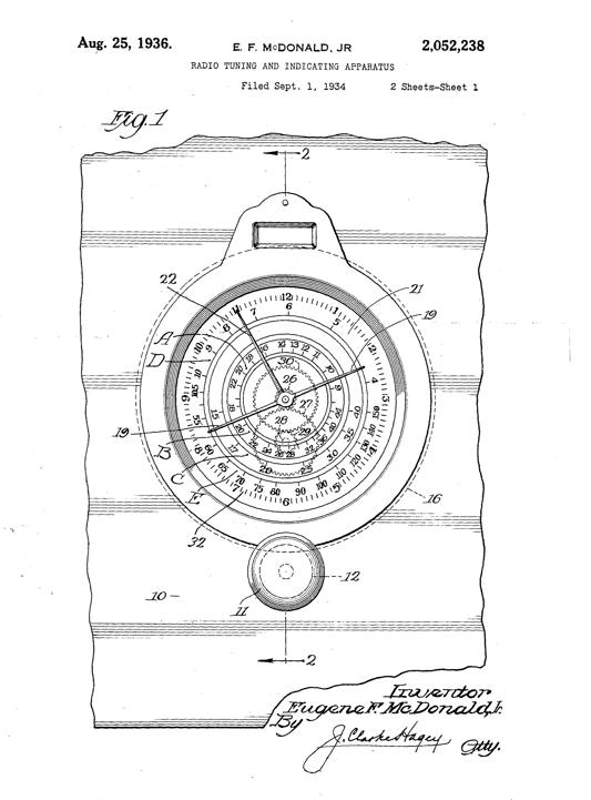 Ниже приведены технические чертежи для патента США № 2052238, предоставленного Евгений Ф. Макдональд, младшим, основателем и главой компании Zenith