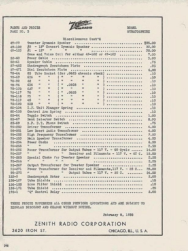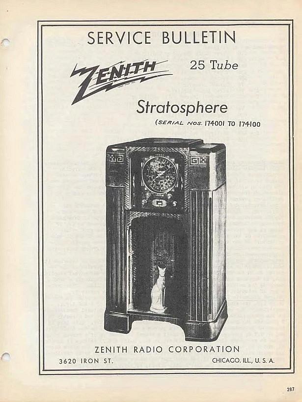 В 1935 году Zenith Radio Inc. выпустила радиоприемник под названием Zenith Stratosphera model 1000Z . В этом радио было 25 ламп и три громкоговорителя, больше чем в любое другое радио на то время. Этот чудо выдавало 50 ватт мощности на свои три динамика – один 6 " высокочастотные и два 12 " низкочастотные громкоговорителя.