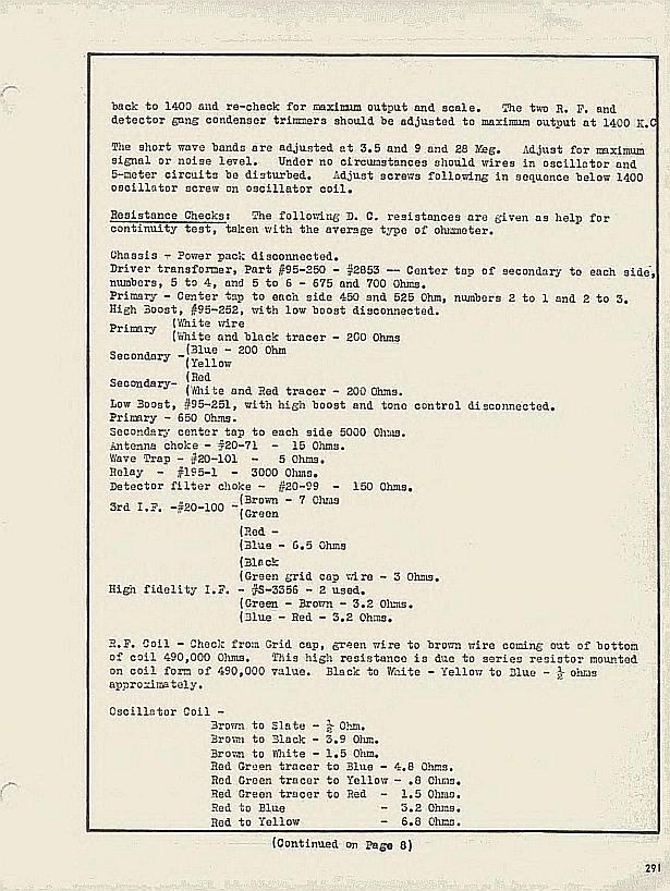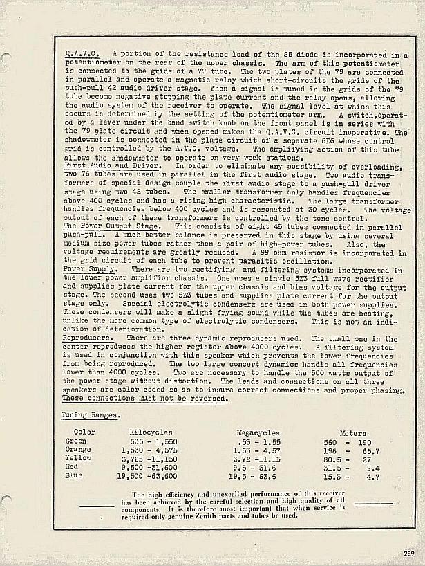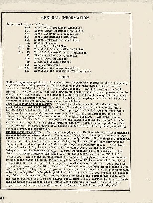 Приемник может воспроизводить весь спектр слышимого звука , от 20 до 20 тысяч герц. Его тюнер принимал всю полосу частот от 540 до 18 300 килогерц , которые в то время охватывали коммерческую трансляцию , полицейский, любительский , и морской диапазоны частот, а также иностранные станции.