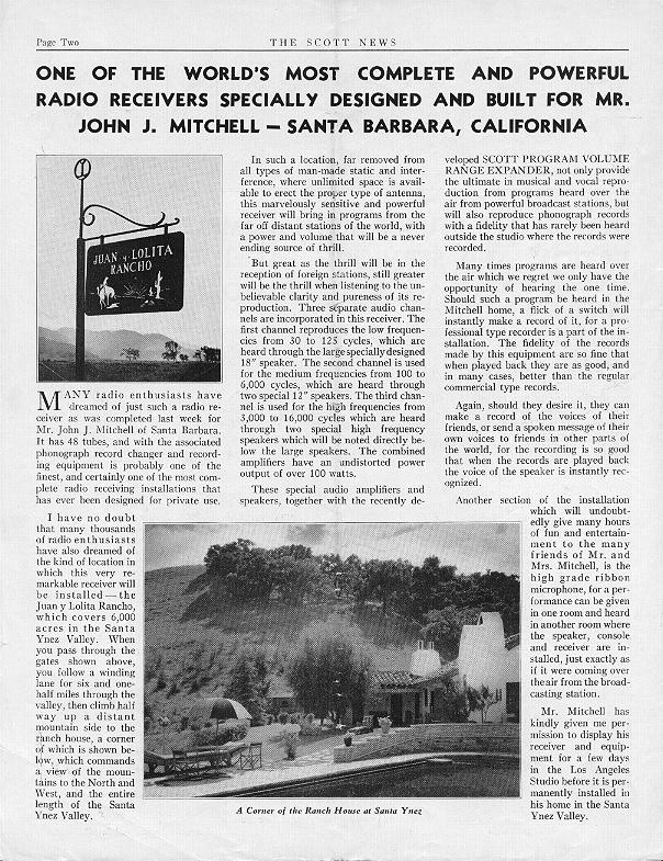 Ключевая и вдохновляющие для г-на Дюбуа была статья появившаяся в апреле 1936 в «The Scott News». Содержимое статье под названием «Один из самых полный и мощный радиоприемников в мире, специально построенный и для г-на Джона Дж. Митчелл – Санта-Барбара, Калифорния» будут отсканирована ниже: