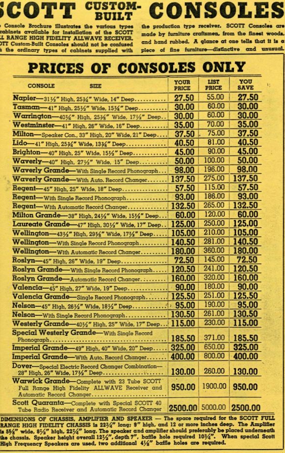 Консоль 50 ½ дюймов (128см) высотой ,Стратосфера продавалась за $ 750 – . Больше, чем многие автомобили ( Для сравнения, новый Форд стоил $ 652 . ) При такой цене это не удивительно, что лишь около 350 комплектов были произведены в течение четырех лет.