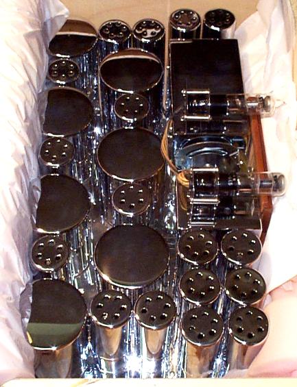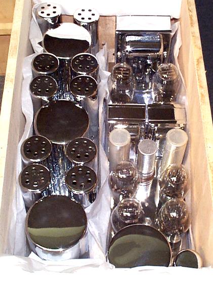 Я использовал исключительно оригинальные запчасти помимо новых трёх шасси (усилителя мощности, усилитель записи и кроссовер). Все компоненты были собраны и отхромированы так же, как и оригинал.