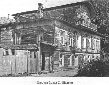 Внизу дома жили его владельцы, верх снимал для проживания агент пароходной компании “Самолет”, пристань которой (плавучий дебаркадер) стояла на Волге напротив гостиницы. По словам старейшего члена клуба краеведов Варвары Михайловны Гладиловой, в этом доме бывал писатель-сатирик М. Е. Салтыков-Щедрин, который даже танцевал с ее бабушкой в пору ее молодости. (Напомним читателям, что Салтыков-Щедрин родился в с. Спас-Угол Калязинского уезда Тверской губернии – ныне Талдомский район Московской области – в 45 км от Кимр и в начале 1860-х годов являлся тверским вице-губернатором). В своих произведениях писатель неоднократно упоминает Кимры, мимо которых не раз проезжал, а вот останавливался ли он здесь, не известно. Свидетельство Варвары Михайловны, полученное ею от бабушки, первое, говорящее о пребывании С.-Щедрина в Кимрах. К сожалению, В. М. Гладилова не знает, когда и по какому поводу писатель приезжал сюда.