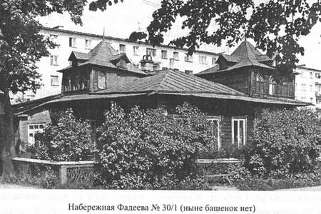 Одноэтажный дом № 30/1 (угол наб. Фадеева и ул. Свободы) построен в 1904 г. До 1940-х годов был владением Ф. М. Курникова. Затем здесь поселились Алексеевы.