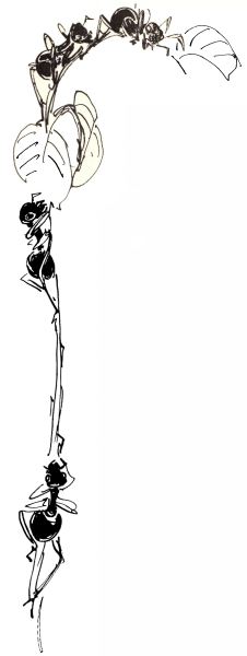 Муравьи одолели веточку и забрались на круглый лист. Лист не выдержал и свалился.