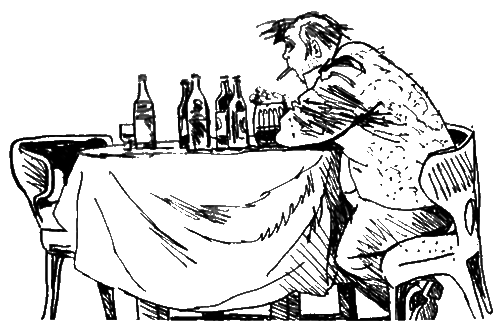 ДИМА возвращается к. ДАЛЬНОБОЙЩИКУ», сидящему в окружении батареи пивных бутылок.