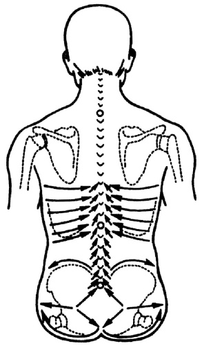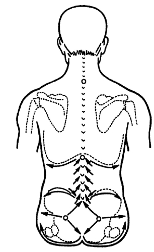 Рис. 58. Направление массажных движений при соединительнотканном массаже спины