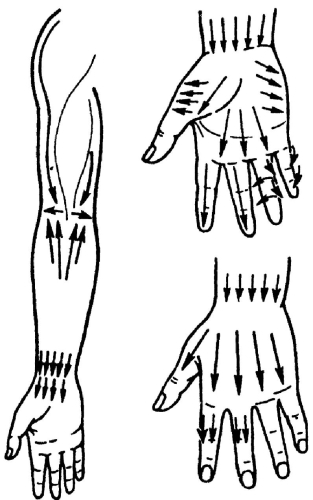 Рис. 61 Направление массажных движений при соединительнотканном массаже