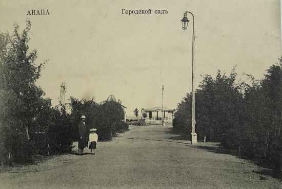 Рядом с беседкой была построена раковина (легкое куполообразное сферическое сооружение) со сценой. Ее главными действующими лицами были оркестранты. Вообще, духовой оркестр был неизменным атрибутом городского сада. Тот же П. Кириллов еще в 1894 г. писал: «Для увеселения публики приглашен оркестр духовой музыки 1-го Екатеринодарского полка. Каждый день, с 7 до 12 часов вечера, публика наслаждается прекрасной игрой оркестра под дирижерством Я. П. Соколовского, который, видимо, не щадит своих сил, чтобы доставить удовольствие как разнообразным выбором пьес, так и хорошим их исполнением. Оркестр нанят анапским общественным собранием на весь сезон за 1500 руб. Два раза в неделю устраиваются в летнем помещении клуба танцы для детей и взрослых. Администрация и местное общество, действуя рука об руку, прилагают все усилия, чтобы публика не скучала» (цит. по: Баклыков Л. И., 1999, с. 7). Разные духовые оркестры звучали в городском саду в последующие годы. Чаще всего привлекались военные коллективы. Заезжал и казачий оркестр. И много отдыхающих и горожан собиралось в городском саду на танцевальные вечера, проводимые здесь не реже 2 раз в неделю на обустроенной у раковины танцевальной площадке. В угоду публике в городском саду в течение каждого курортного сезона на летней сцене также по 2-3 раза в неделю проводились выступления местных артистов-любителей (давайте вспомним сообщение В. П. Щепетева о местном обществе любителей драматического искусства) или заезжих гастролеров.