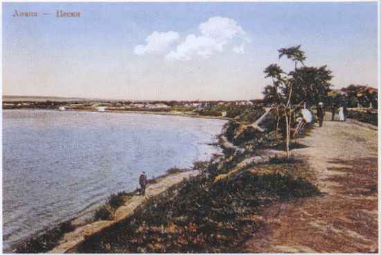 Береговая линия от пристани до мыса, за которым начинается Малая бухта, отражена на нескольких открытках. Так, на предыдущей (рис. 64) берег не случайно назван дачным. Действительно, за сквером Пиленкова начинался район дачных застроек. Одной из дач здесь владел Борис Борисович Голицын, «который был автором многих научных открытий и изобретений в области физики, математики, метеорологии, сейсмологии, президентом Международной сейсмической ассоциации, директором Главной физической обсерватории» (Харалдина 3. Е., 2006, с. 26). Напомним, что из-за именитого хозяина дачи в этом переулке за ним закрепилось название Голицынский. Рядом с городским садом размещались участки Ефимова, Монастырло, Поповой и др. Как отмечал автор путевых очерков П. Кириллов, опубликовавший их в газете «Кубанские областные ведомости» в 1893 г., «Анапа... сделалась для обывателей дачным местом, куда на лето выезжают семейства чиновников, учителей и других. Теперь здесь 470 семей» (цит. по: Баклыков Л. П., 1999, с. 7). Дачные строения находились и в других местах города, близлежащих к берегу моря. В конце XIX в. современники отмечали, что в Анапе имеется несколько наиболее красивых домов, являющихся дачами и имеющих замечательный вид на море.