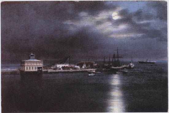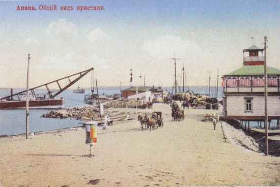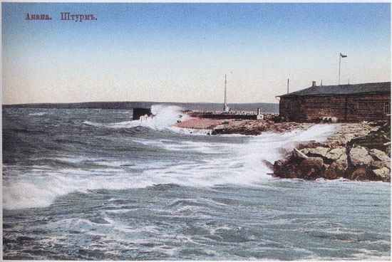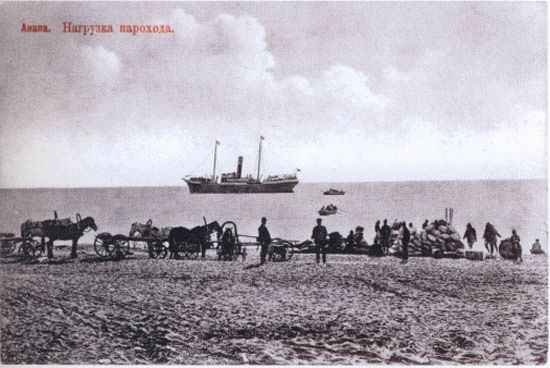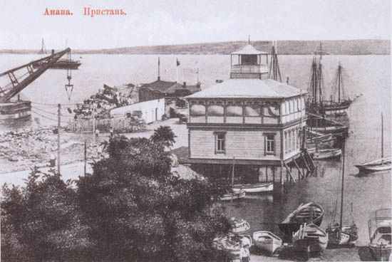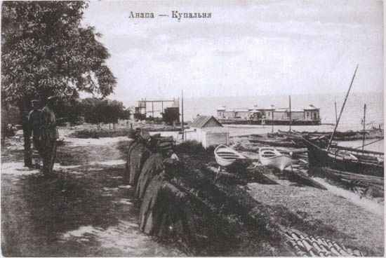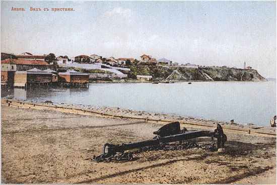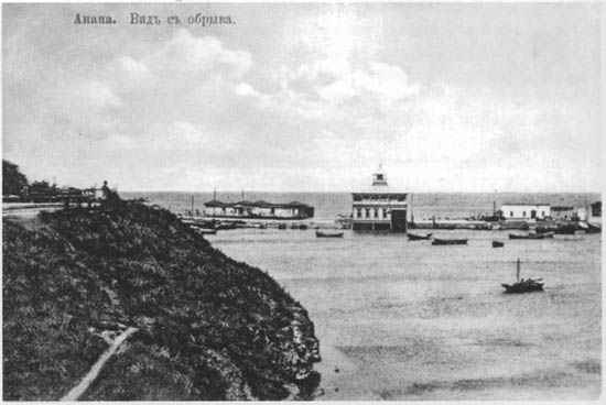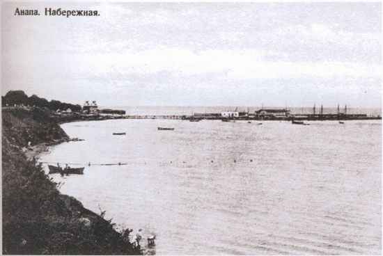 Кстати, вот что пишет В. П. Щепетев об анапской пристани: «Анапа имеет очень невыгодное положение: на берегу Черного моря она лежит между Керчью (в пяти часах плавания на пароходе) и Новороссийском (в четырех часах плавания). Так как для пароходов важно, чтобы их прибытие и стоянка в больших портах Керчи и Новороссийска происходили днем, засветло, то в Анапу пароходы, поддерживающие сообщение вдоль Черноморского берега (Русского Общества пароходства и торговли и Российского Общества страхования и транспортирования кладей), попадают только ночью. Поэтому если море очень бурно и шлюпки не могут выйти в море, то пароходы проходят мимо; в случае качки пассажирам не до любопытства о том, что такое Анапа; если же море тихо, то с борта парохода, останавливающегося в полуверсте от берега, видны только неясные очертания берега и ярко блещущие звезды электрических фонарей. Поэтому пассажиры пароходов, отлично представляющие себе Новороссийск и Керчь, так как видят их днем, не могут составить себе никакого представления об Анапе.