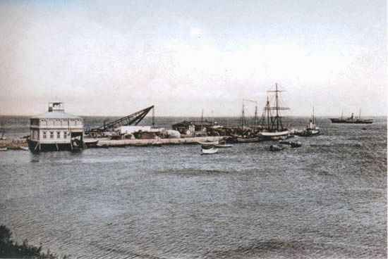 Рис. 47. Незащищенность пристани от штормов тоже затрудняла швартовку приходящих судов