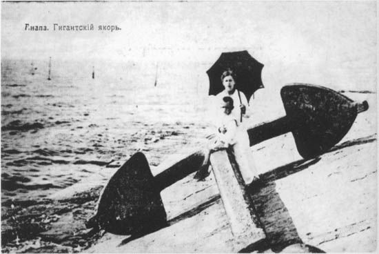 Рис. 72. На снимке пушка и якорь, находившиеся в городском саду.