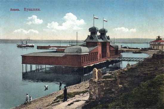 «6 февраля 1897 г. решением собрания городских уполномоченных... было разрешено Воскресенскому мещанину М. Е. Ефимову устроить в Анапе теплые морские ванны. Дабы избежать конкуренции, господин Ефимов попросил собрание не устраивать в течение трех лет аналогичных ванн на средства города и не выделять другим лицам городскую землю под строительство зданий. Эта просьба была уважена» (Баклыков Л. И., 1999, с. 24).