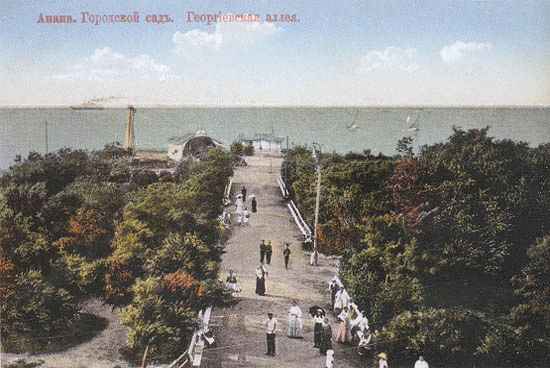 Сразу за дачами начинался городской сад – излюбленное место прогулок отдыхающей публики. Уже к 1893 г. сад был приведен в порядок. Ранее создававший большие неудобства для прогулок крепостной вал был полностью срыт, а на его месте разбита новая широкая аллея, получившая название Георгиевской в честь