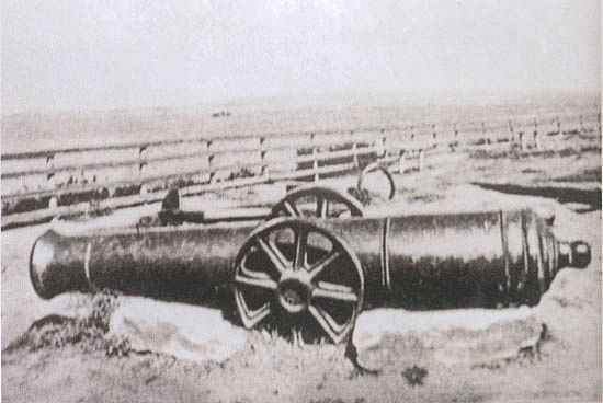 Рис. 33. Рядом с «Русскими воротами» лежит пушка, привезенная из городского сада. Чуть позже она будет установлена перед воротами