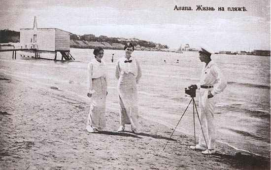 На пляже, в царстве моря и песка, всегда можно было сфотографироваться на память о днях пребывания в Анапе. Судя по количеству и качеству снимков, приведенных в книге, техника фотографии тогда была уже довольно развитой, и фотографы вполне могли удовлетворить отдыхающих красивыми и четкими фотоснимками на фоне моря за определенную, разумеется, плату. Кстати, оказанием фотоуслуг для приезжей публики тогда занимались не только анапские фотографы, но и приезжавшие на летний сезон в надежде заработать мастера фотосъемки из других городов.
