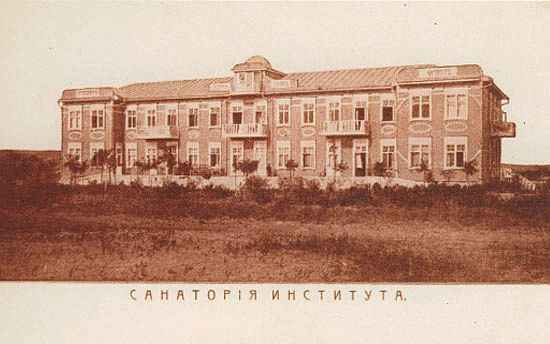 Рис. 157. Открытка с наиболее удачным видом центрального фасада здания Ортопедического института санатория «Бимлюк»