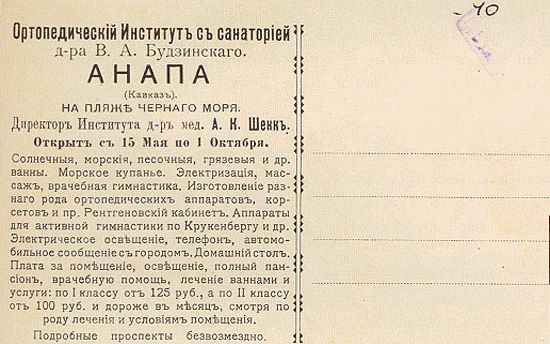 Рис. 155. Рекламная открытка санатория и Ортопедического института доктора В. А. Будзинского