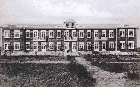 Рис. 158. Ортопедический институт В. А. Будзинского. Гористый пейзаж на заднем плане – тоже плод творчества художника-ретушера