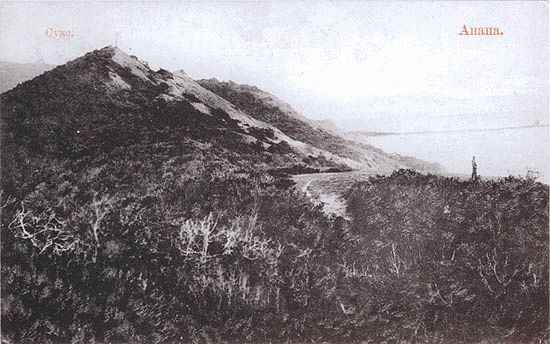 «Выйдя» за пределы города, мы тем самым подвели вас к краткому обзору окрестностей Анапы, вокруг которой из наиболее крупных близлежащих населенных пунктов располагались станицы Анапская, население которой к 1916 г. составляло 4263 жителя, Благовещенская – 3957 жителей, Гостагаевская – 11700 жителей, поселок Витязево – 1162 жителя, аул Суворов-Черкесский – 582 жителя. Кстати, аул Суворов-Черкесский был, пожалуй, единственным местом в анапских окрестностях, где остались компактно проживать черкесы (натухайцы), называвшие его Хатрамтук («тупик»). Интересен аул еще и тем, что на его окраине производилась добыча нефти. Из населенных пунктов следует отметить еще и село Уташ, деревню Михаэльсфельд (была основана и заселена немецкими переселенцами), село Юровку и село Варваровку (ее населяли чехи).