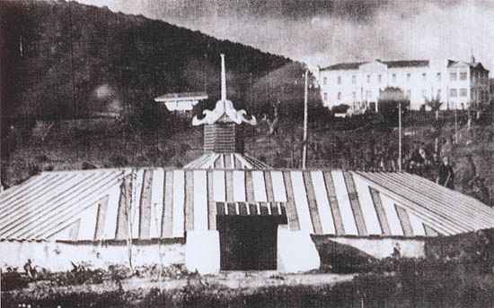 Рис. 149. Грязь для процедур подавалась разогретой. Кроме того, в лечебнице имелся потельный зал, для которого тоже нужна была высокая температура. Именно поэтому так дымит труба котельного отделения грязелечебницы